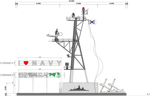 이번에 추진하는 랜드마크 조성 사업은 기 설치된 육군 현무미사일과 공군 팬텀기에 이어, 해군의 상징인 구축함 ‘마스트’를 추가로 설치하는 것이다.