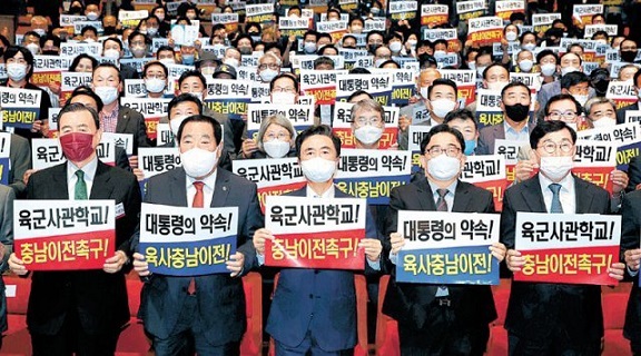 충남도 등에 따르면 육사 충남 이전은 대통령직 인수위 당시 윤 대통령의 충남 공약으로 발표됐다. 충남도 역시 민선 8기 핵심 과제로 설정하고 범도민추진위원회를 발족시키며 전국적인 공감대 확산에 나섰지만 육사 총동문회와 일부 지역 주민들의 반발로 현재 수면 아래로 가라 앉은 상태다.