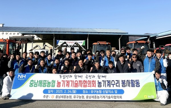 ▲ 충남세종농협은 농업인들의 불편을 덜어주기 위해 24일 공주시 유구농협에서 올해 첫 농기계 순회수리 봉사활동을 실시.