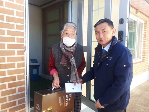 ▲ 충남 홍성군 홍북읍이 지난 24일 제106주년 3·1절을 앞두고 읍내에 거주하는 독립유공자 유족 14명의 가정을 찾아 위문품을 전달하고 국가를 위해 헌신한 선열의 숭고한 정신에 감사.