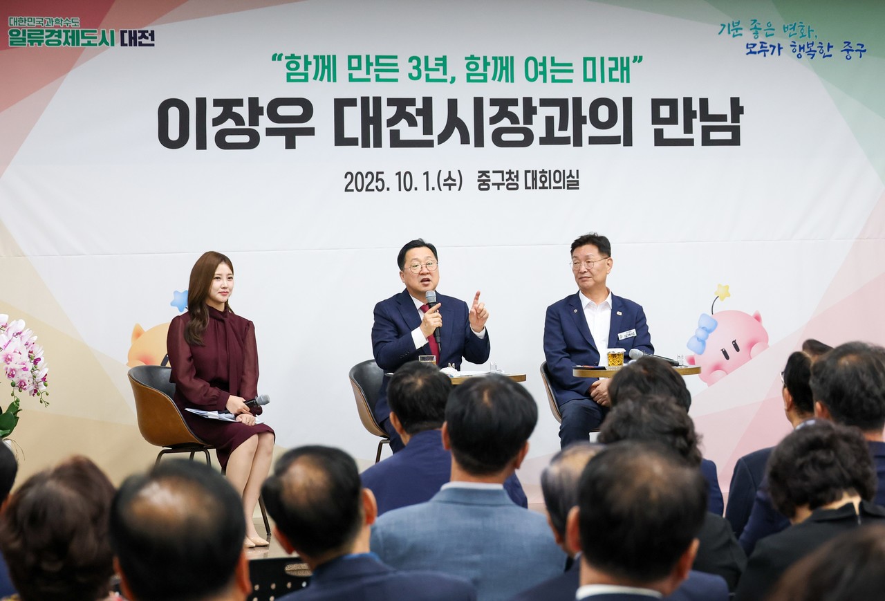 [충남일보 심영운 기자] 대전시는 이장우 시장이 1일 올해 첫 자치구 방문 일정으로 중구를 찾아 주민 200여 명과 소통의 시간을 가졌다고 밝혔다.