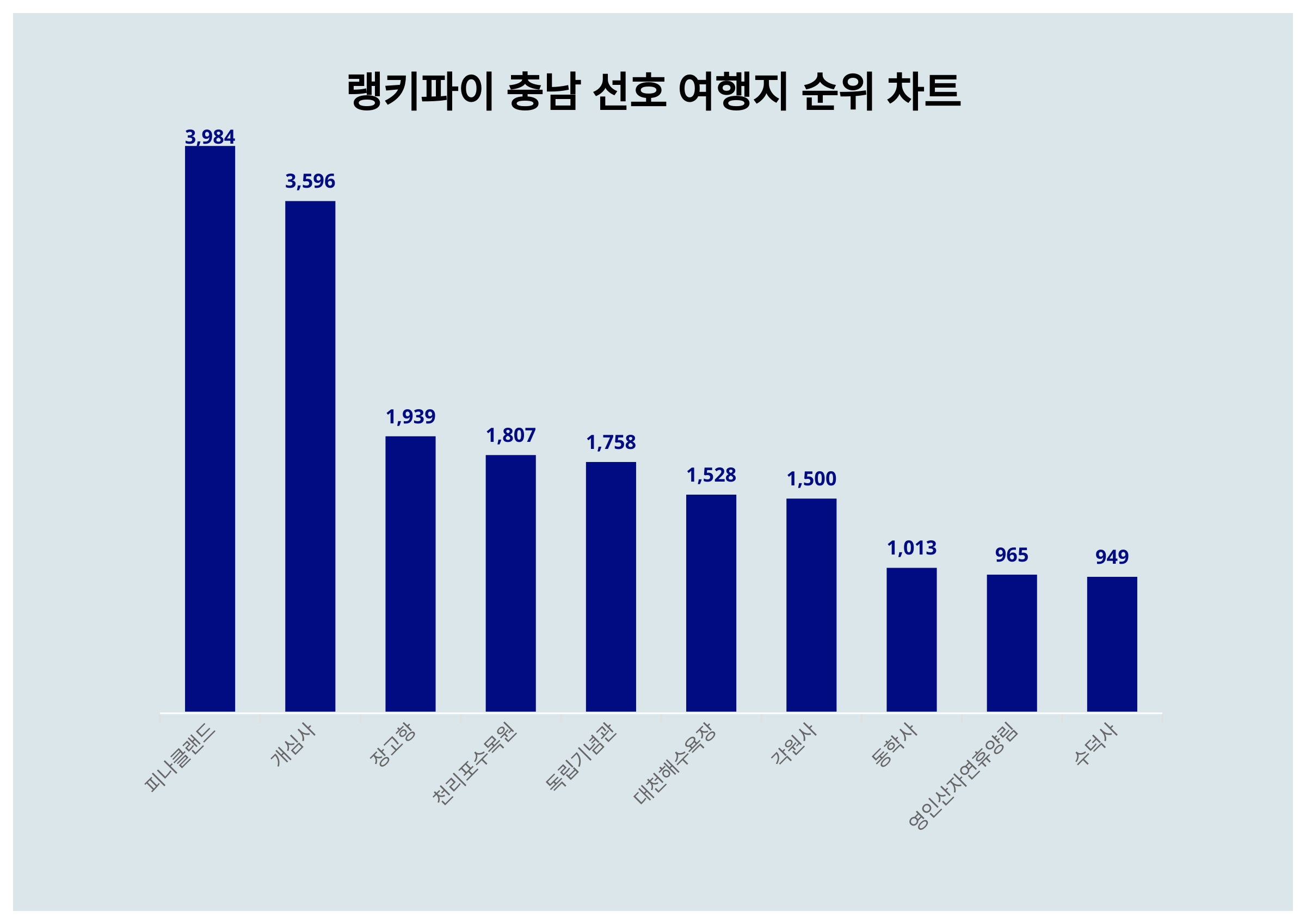 [출처: 랭키파이 충남 선호 여행지 트렌드 지수 분석 결과]