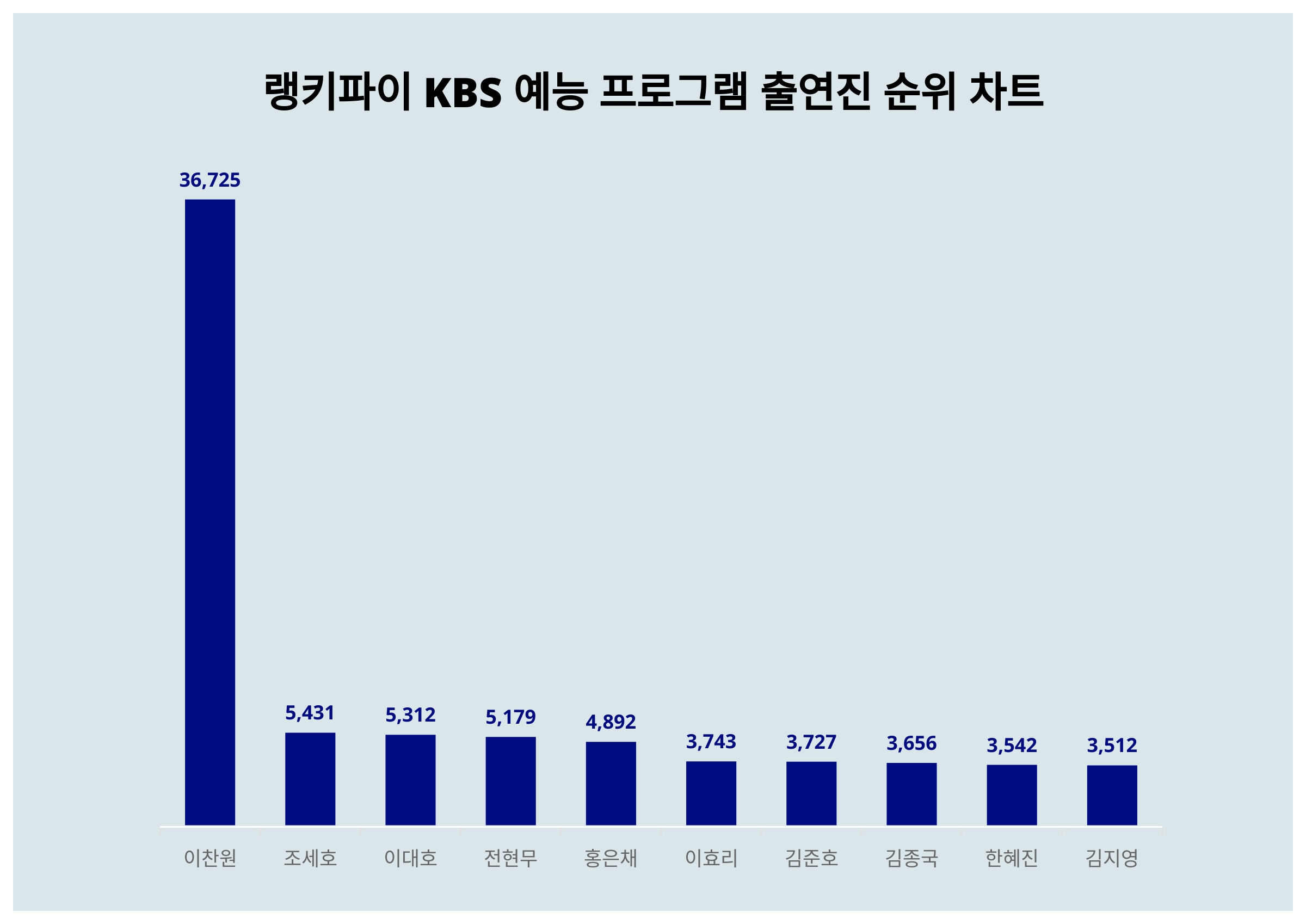 ▲KBS 예능 프로그램 출연진 트렌드 지수 분석 결과 ⓒ랭키파이