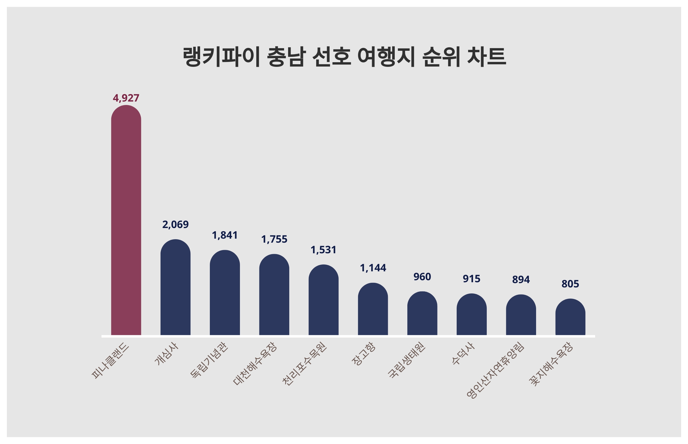 ▲충남 선호 여행지 트렌드 지수 분석 결과 ⓒ랭키파이