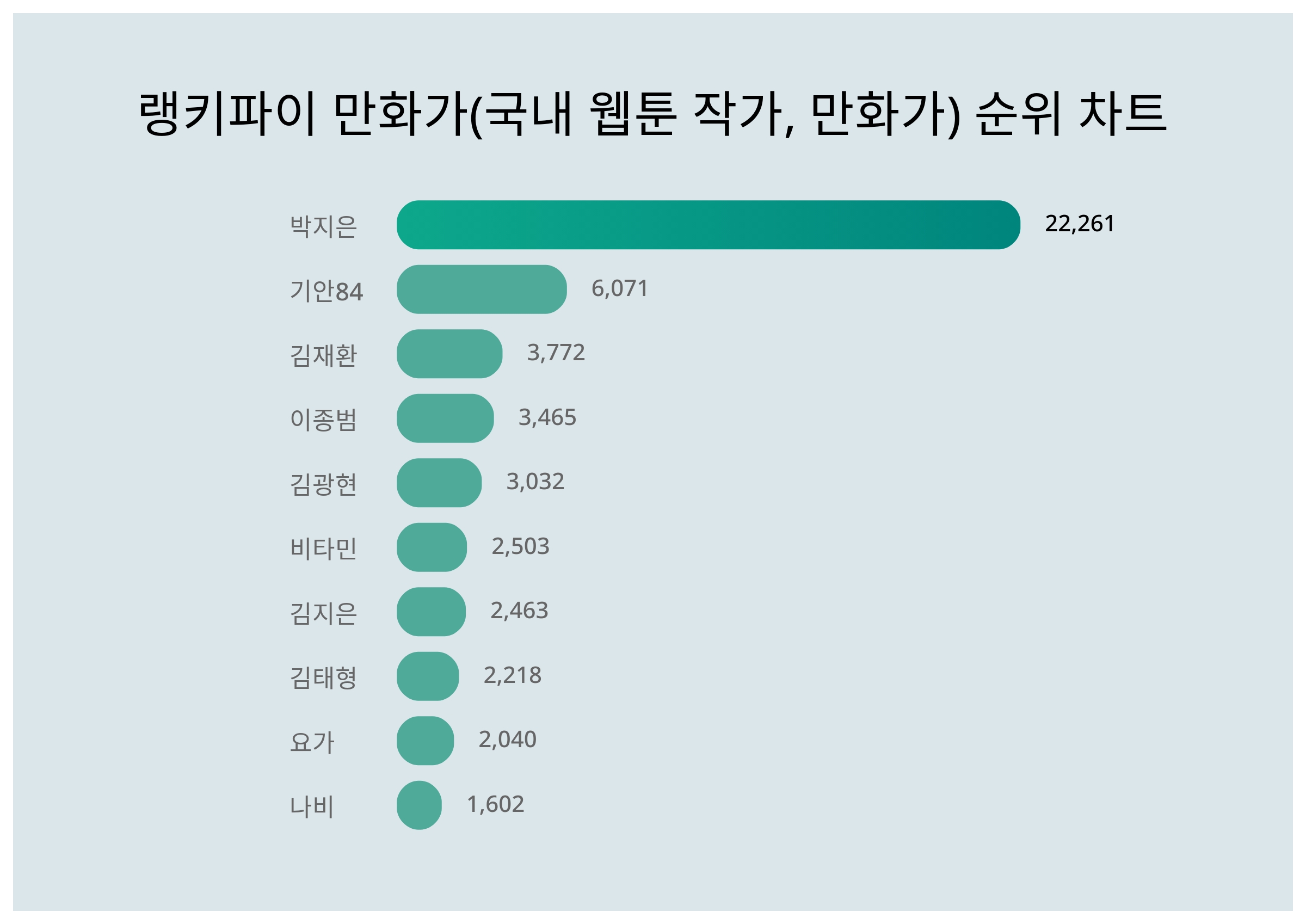▲만화가(국내 웹툰 작가, 만화가) 트렌드 지수 분석 결과 ⓒ랭키파이