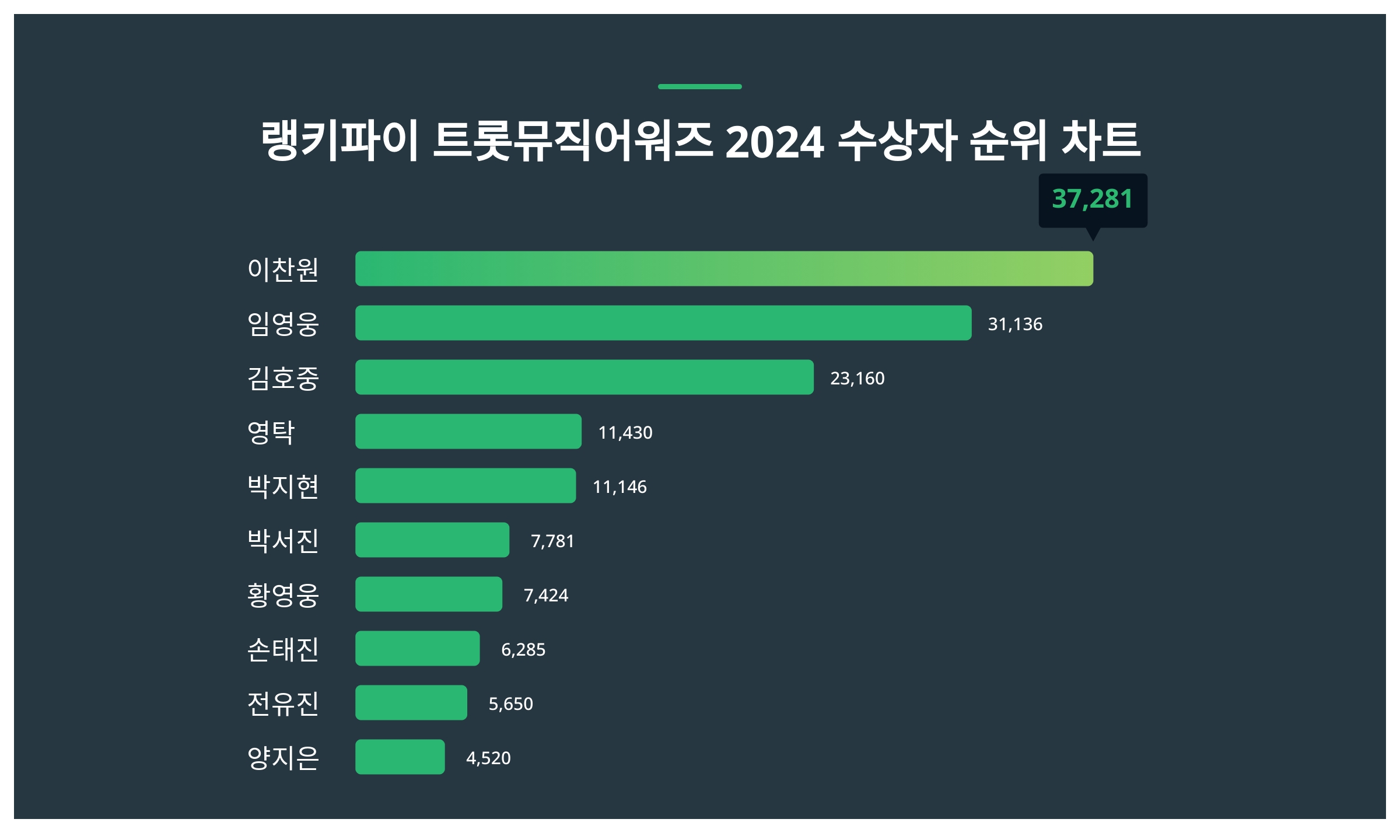 ▲트롯뮤직어워즈 2024 수상자 트렌드 지수 분석 결과 ⓒ랭키파이