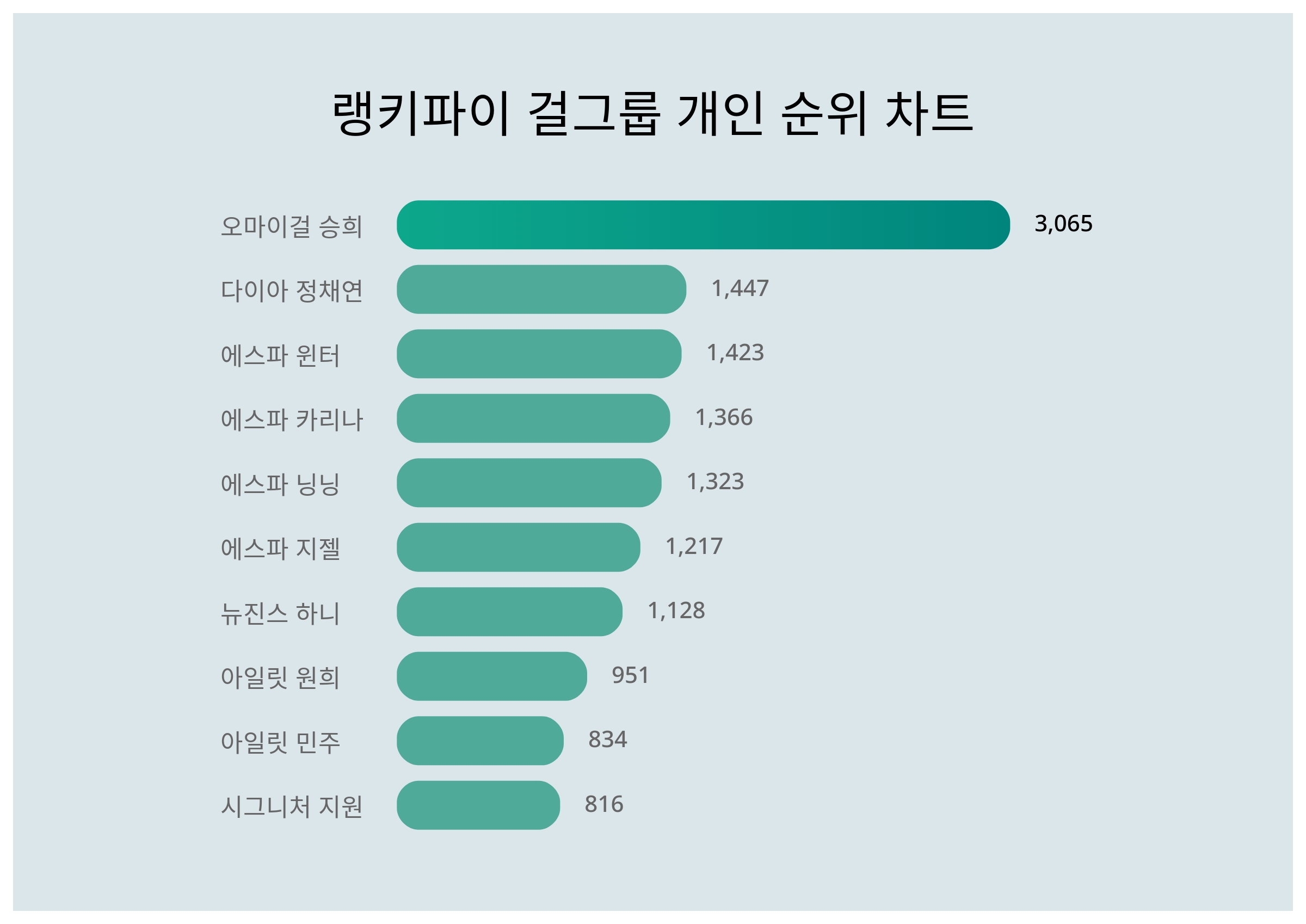 ▲걸그룹 개인 트렌드 지수 분석 결과 ⓒ랭키파이